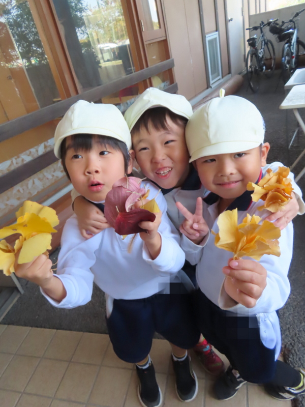 色づいた落ち葉やどんぐりを拾い、秋をたくさん感じる事ができました。