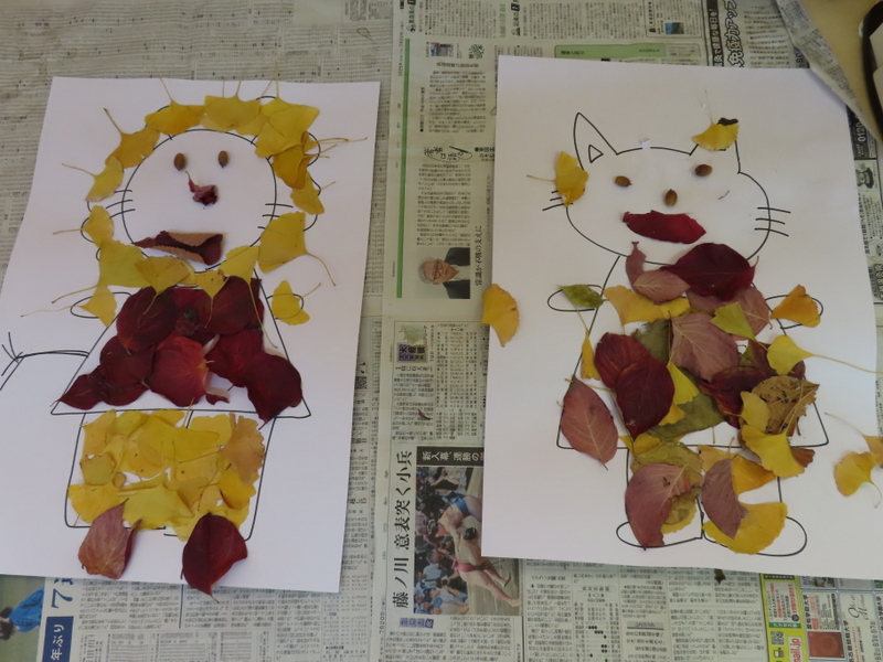 拾ってきた落ち葉で、かわいいアートの完成(^_^)v